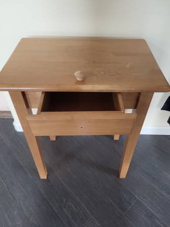 22.5 "wide 14.5" deep 28"tall Wood (entry) table U pickup up I have a wood nob for it..u can have that too.