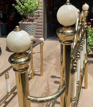 Full size brass bed frame with onyx. Very nice looking. One corner section has scratches Purchased new in the mid 80’s $600obo Cash If the post is still up, I still have it
