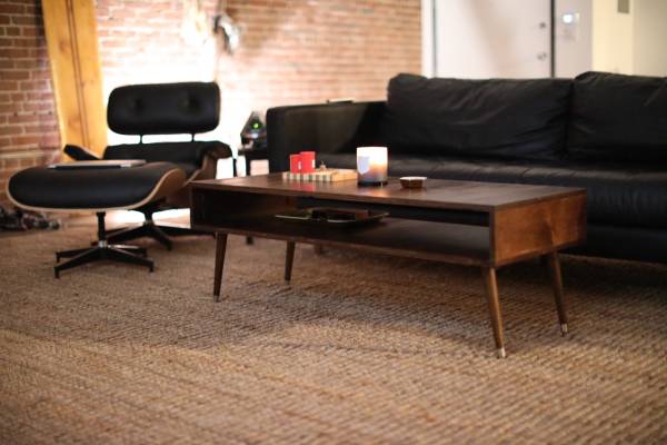 Oxford black mid century modern couch - the Sven collection from article. “Casually sexy. The Sven in oxford black is equal parts laid back and intimidatingly hot. This black leather sofa is built on a corner-blocked wooden frame and upholstered with supple semi-aniline leather. Slender walnut legs, a tufted bench seat, and loose back and bolster cushions make for a sofa that is pulled together, but ready to get a little rowdy too. Add some sensual energy to your living space. Meow. Natural color variations, wrinkles and creases are part of the unique characteristics of this leather. It will develop a relaxed vintage look with regular use.”