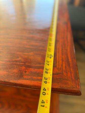 Hand made custom wood table. It has been refinished recently. Not flawless, there are a couple scratches, etc, but overall good, Sturdy table that comes with bench seating (no chairs)