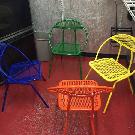 We are a local Powder Coating and Sand Blasting shop that restores any metal type furniture.Want to get that rusty old chair and table set looking better than new again? Do you have any vintage type furniture you want to restore? We have the ability to sand blast and re coat anything metal. Powder coating is a durable, weather resistant, beautiful finish that is baked on. We have over 600 colors in stock and there are over 6000 colors available. Give us a call and we will be happy to help you out.