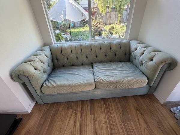 Love this couch - Like your favorite pair of denim jeans, this couch has worn with me; Wish I could take it! Unfortunately was not scotch-guarded, so has seen some fading with sun and spot removal. Dimensions 88" long (end to end) 41" deep/wide (front to back). Cushions/seating area: 64" long x 25" deep. For pick-up only - in Pleasure Point. Will help carry & load. Will accept best offer!