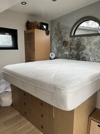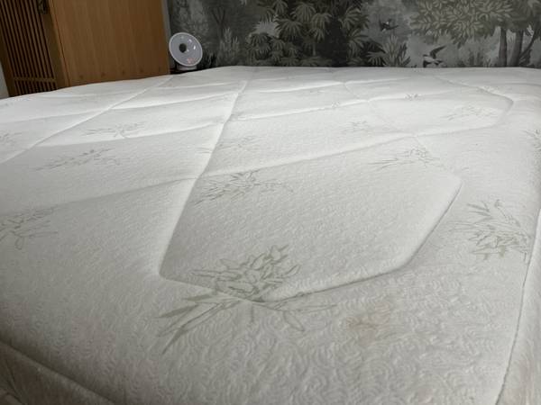 Non smoking and single woman household. No pets. I paid over $3K for this mattress 2 years ago and since moved and needed to downsize to a queen. It is 100% memory foam and SO comfy! I'd say medium to firm. In 2 pics you can see the original zip cover on it. I have another that I placed on top. Both of which I'll throw in for free if you want them. Or you could get a completely new mattress cover for it if you're sensitive to having new pristine bedding. Great way to save some $! Sorry I can't see the brand printed anywhere but it's super high quality and I remember how expensive it was :)