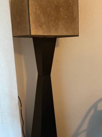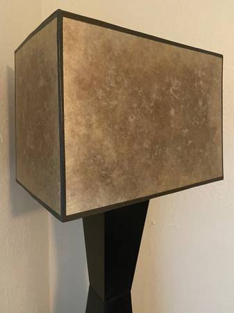 Beautiful floor lamp that is very modern. The base is very stylish. One of a kind and it is well made. The shade almost looks like it is made out of shells.