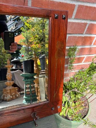Beautiful handmade oak arts and craft mission mirror Measures 34 1/2 inches wide by 22 inches tall.…. Call