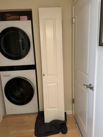 Bi fold interior door. Primed and painted. Hardware included. The new W&d don’t allow its use as seen in the pictures