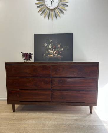 Beautiful 6 drawer mid-century modern by the LA Period Furniture Company, low-boy dresser. It is solid and well made. The entire piece has been conditioned to have that beautiful glow. All drawers slide smoothly, dovetail jointed. In excellent like new condition.