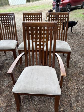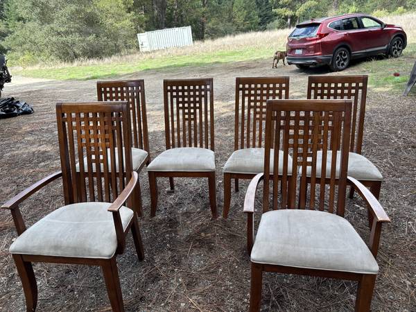 Set of 6 solid wood dining room table chairs. Good condition. Free delivery in Santa Cruz, Will deliver up to 50 miles away for a reasonable fee.