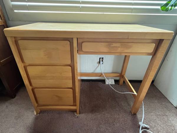 well built wooden desk, great for students, lightly worn but in great condition 31.5 x 40 x 18.5 inches (height, width, depth) local pick up only, cash or venmo accepted
