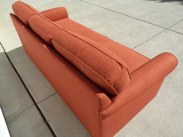 Marin 84" 3-Seater Sofa - Autumn Red Fabric (Living Spaces) Medium height, firm Two years old, use briefly for home staging, in storage since Only selling due to lack of space