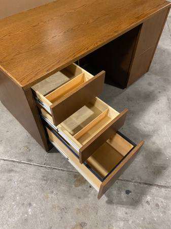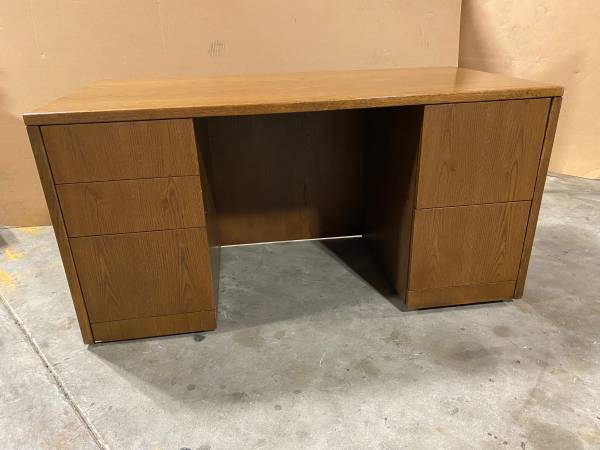 Desk. Walnut, 5 drawers, solid good condition with some small wear and tear scratches. Size; 60”W x 30”D x 30”High