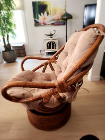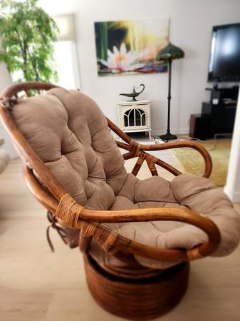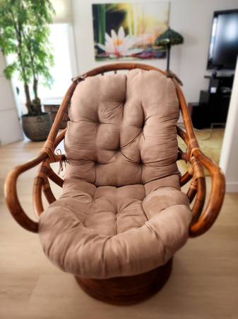 Bali swivel, rocking, lounge chair with microsuede cushion in like new condition. It's very comfortable. You can see the details on Amazon under Bali Lounge Swivel Rocking Chair ($300 on Amazon). Great chair for living room, bedroom, or any other room.