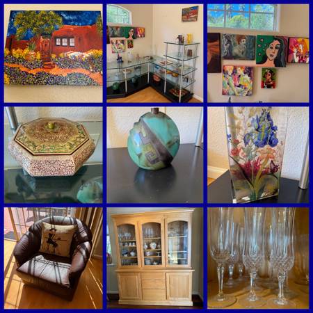 This house is full of modern and higher end furniture as well as art. There’s also clothing outside items, garage items, jewelry, desks, bedroom, items, books, household and more.