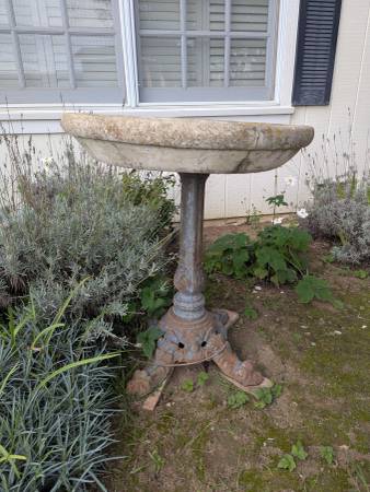 -Great outdoor patio furniture, metal yard art, beautiful French cement planters, large antique bird bath, and plenty more!