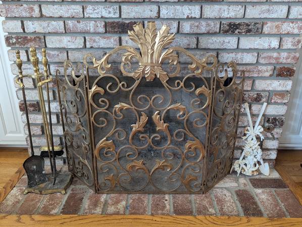 -French Empire brass fireplace screen, antique French Comtoise wall clock, Hamilton mantle clock, Large Karastan Ashara 8'8'' x 12' area rug, and other rugs!