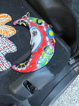 Beautiful large Mexican Talavera sun face and moon Sun diameter 21” Moon 10” Sun has been glued one piece but doesn’t affect it .