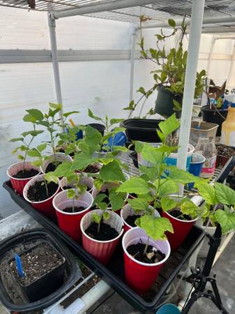 i have rose of Sharron hibiscus starters in 16 ounce cups ready to transplant. They are the either pink one or the white ones i cant tell.