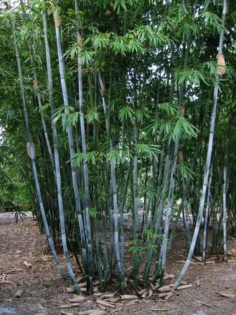 We have for sale two varieties of clumping Blue Bamboo, Bambusa chungii and Bambusa chungii 'Barbellata'. These are highly sought and hard to find bamboos. The main differences between these two cultivars are the heights, diameters of the canes, and the amount of space needed, as described below.