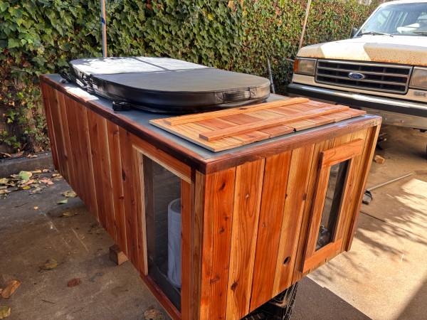 This beautiful plunge is made from locally sourced redwood, comes with a 1/3hp chiller and 1000gph pump with filter and ozone generator. It’s very well insulated and capable of cooling down to the mid 30s or stay in the 40s by only running the chiller a few hours over night . A smart plug to control the schedule will be included and you can tweak it as needed to fit your temperature goals (anything under 45 is pretty dang cold!)
