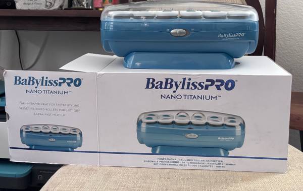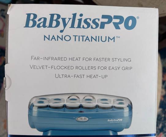 Nano titanium with velvet flocked material on roller for no tugging nor damage to hair paid $120 willing to accept $65 Se habla Espanol