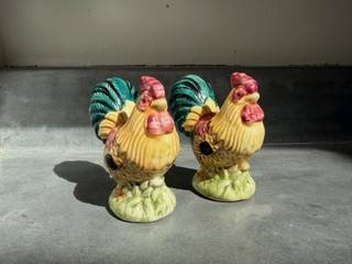 Two cute chicken salt and pepper shakers. Great for a country kitchen.