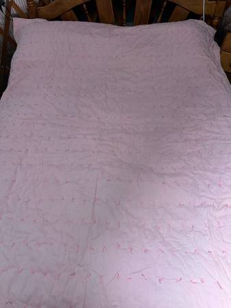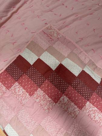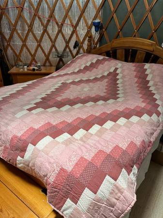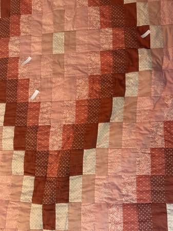 For sale is a beautiful handmade quilt signed by the maker. It is a diamond pattern and classic. It’s very soft and I believe it’s cotton.