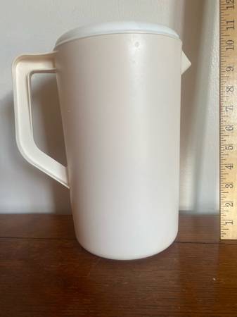 In new condition beige Rubbermaid brand 1 gallon pitcher with lid.