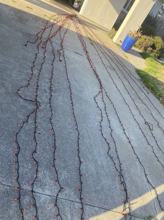 Exterior Lights. 11 strands at 24ft 4 strands at 14 ft. 320 ft in total $50 or best offer for the lot. Guaranteed all bulbs are working