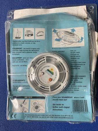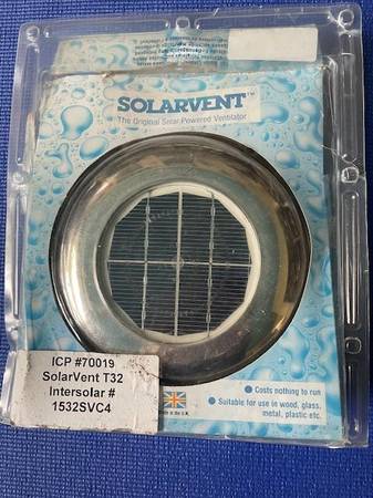 Solar powered ventilator for boat or RV Extracts air, On/Off switch Stainless steel cover 4" hole, 7.25" cover Brand new