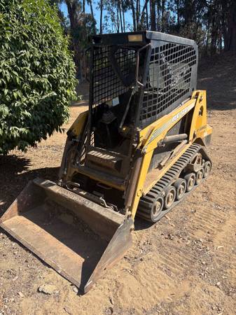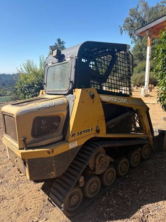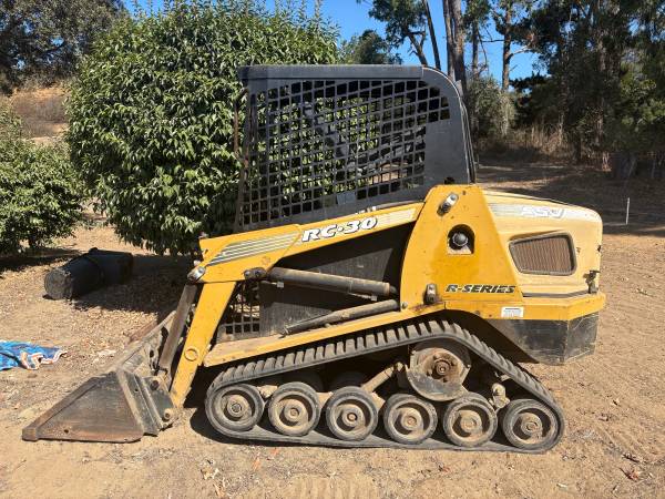 RC30 Skid Steer. I bought it used on Craigslist about 4-5 years ago and I don’t know how many hours on it. It has a 4 foot wide bucket, great for tight backyards. It runs pretty good, it has a Caterpillar motor. New battery. No foot controls, only hand controls. Feel free to come check it out.
