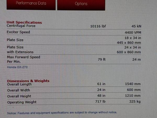 Honda powered nervous turtle,get excellent compaction, as new ready to go to work, looks and runs as new. I have other plates and compactors from jumping jacks to Rammax to 48" rollers all ready to...