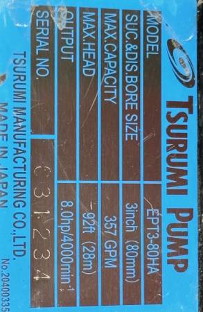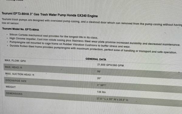 3" centrifugal pump in excellent shape , looks great, pumps great, suction and drain hose available 8 horsepower Honda engineAlso have other pumps 2"=4" for more and less