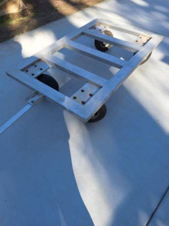 Heavy duty industrial dolly. Pneumatic wheels. See photo for dimensions. Local pick up only, easy access. Handle comes off.