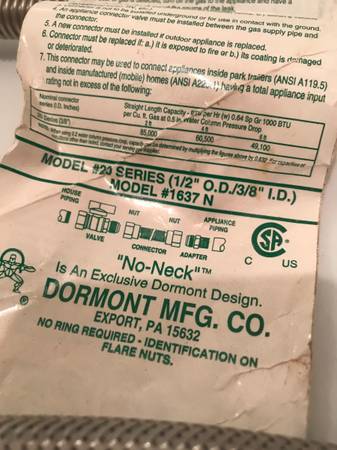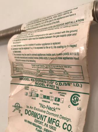 Send your number I will text or call ONLY 1/2” DORMONT GAS CONNECTOR / MODEL# 1637 N $10