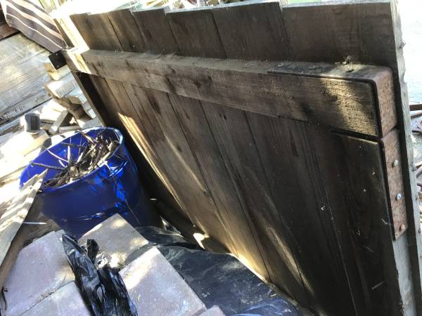 Nice redwood gate 46" x 69" with heavy duty hinges. $110