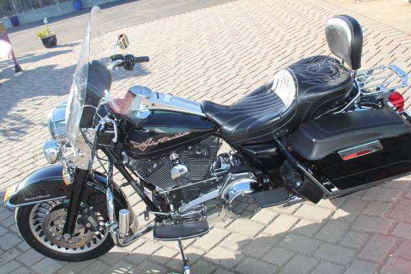 One owner; garaged and covered; very good condition; numerous included accessories (LED headlight, luggage rack, backrest, custom heated Corbin seat for 2, T-bag handlebar storage luggage, black powder coated front forks, K&N reusable air filter, foldable highway pegs, HD analog/digital speedometer/tachometer/odometer/clock, saddlebag liners, and more). 96 cu. in. engine, 6 spd. transmission, full tank range about 225 mi.