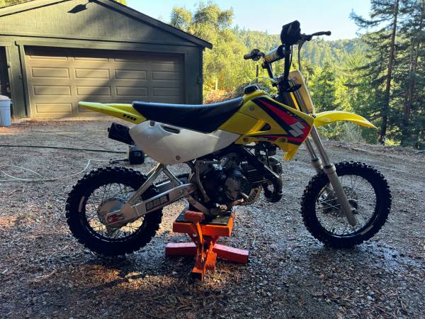 The rarest of all 110 models, Suzuki only built the drz 110 for 3 model years 2003- 2005. This example is from the final model year 2005. This bike is lightly used and in excellent condition with the addition of some choice modifications. Including upgraded kx65 front end (with stiff springs and disk brake), bbr rear swing arm, fox air shock, black excel rims with HD spokes and pro circuit exhaust just to name a few. If your seriously interested google search “drz110 build” and the top result is this bike. I purchased a 143 big bore kit with v2 race head with new carb but moved out of state so it is new in box never installed and will be included with sale, along with tons of other parts like the original front end and yes matching black excel wheel for that front end(drum brake). Bike is stock motor and trans. This bike has not been beat, it is the original plastics and graphics from new in 2005. The frame has not been powder coated, all original. This is a rare opportunity to get a pit bike set up for a 200+ lb rider with all the original parts to return to stock and a complete brand new big bore kit to turn this into a real supermini.