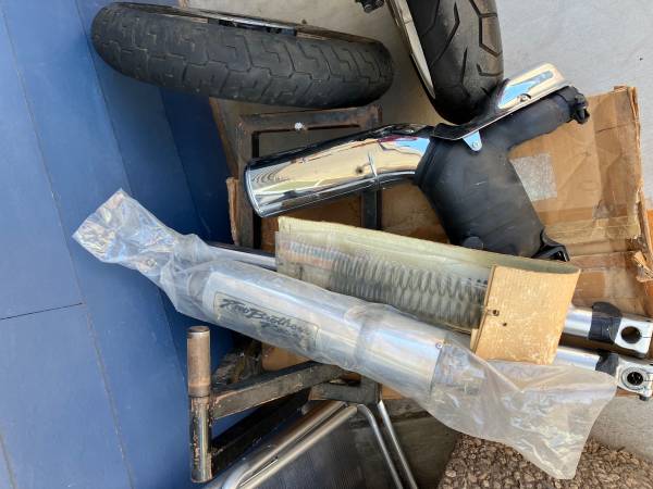 Other extras include: steering damper, OEM brake lever and master cylinder, an extra pair of fork springs, OEM exhaust muffler/ headers, front fender, rear axle paddock stand, factory Honda Service Manual and lots of other odds & ends.