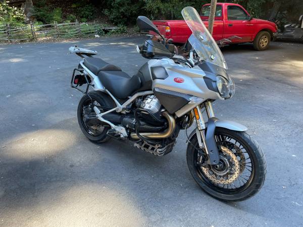 2010 Moto Guzzi Stelvio 1200cc ABS with only 24k+ miles. Great ride with tons of engine personality. Cool Italian styling. A lot more fun than my earlier BMW, Ducati and KTM. My wife wants her old man on a smaller bike now. My loss. Hoping this bike will go to someone who enjoys the purr of a wonderful engine and the cornering of an Italian made bike. The dealer recently updated the maintenance and I put new tires on her. The rest is up to you. The bike is in Santa Cruz but I can bring it to a serious buyer.