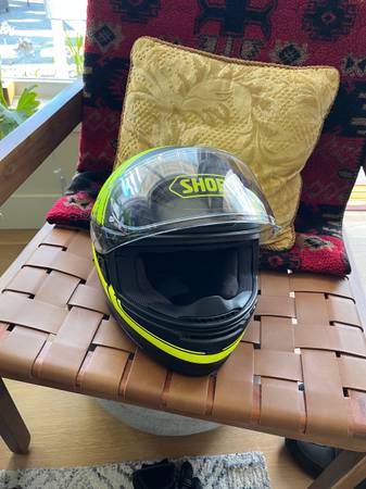 Like new Shoei motorcycle helmet. Has a transitional visor that gets darker if the sun is hitting it. It’s a medium 71/8” to 71/4”. I have original lens as well .. Cash only. 83one-24seven-five962
