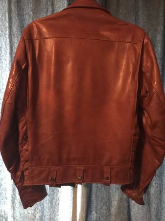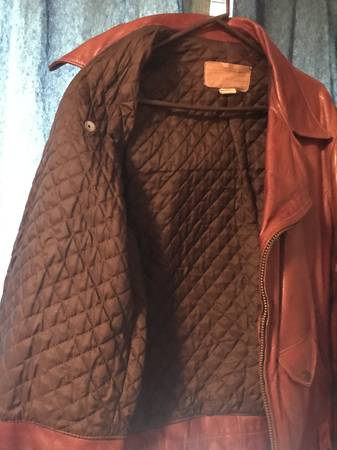 Selling my men's -High Quality- Leather jacket. Made by "Crazy Horse Leathers" bought at the Tannery in Santa Cruz California. Great condition. I believe a size 42-44. Tag is faded. Insulated-quilted- inner lining. Zippered sleeves for breeze free ride. I'm 6' 165 lbs.. Medium build. If your 5'10 to 6'1" average build give it a try.