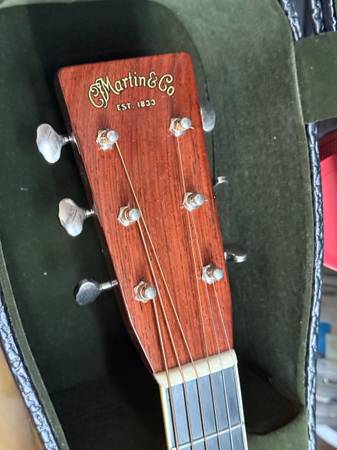 Martin 000-42 Authentic 1939, built in 2016, for sale. This is a high-end, historically accurate reissue of the pre-war 000-42 model—just like the one Eric Clapton used on MTV Unplugged. Only 104 of these were ever made, making it a rare and collectible piece. Built with hide-glue construction and a traditional dovetail neck joint, it features a solid Adirondack red spruce top treated with Martin’s Vintage Tone System (VTS), solid Madagascar rosewood back and sides, and a jet-black ebony fingerboard and bridge. It’s fitted with rare, reproduction Grover G-111 tuners with butterbean buttons and a 12:1 gear ratio.