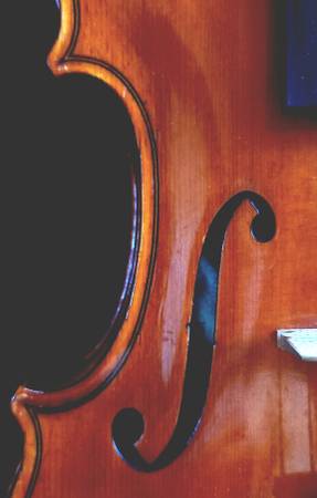 The instrument has a thick red-orange over a yellow ground varnish finish, making it stylish and comes with a lightweight case to protect it for transport. Having typical player's wear (i.e. a few chips and scratches), it also has a VERY well repaired post crack. I've performed professionally on this violin many times over the past 23 years and use it in all my lessons. The solidly repaired pc is a non-issue and almost invisible...look at the pic.