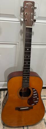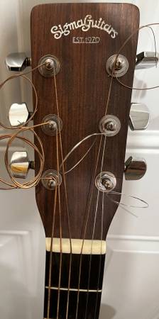 1988 Sigma by Martin SDM-18. Can send more pics. Trades considered. Solid spruce top with scalloped bracing and ebony fingerboard. Sounds wonderful. It has a V- shaped neck very much like Martin guitars. It has a few finish flaws and a hairline crack near the soundhole on the top that are hard to detect and do not affect sound or playability. This is how it came from the factory as a 2nd. Very nice sounding guitar. Will consider trades for pedals or electric guitars.