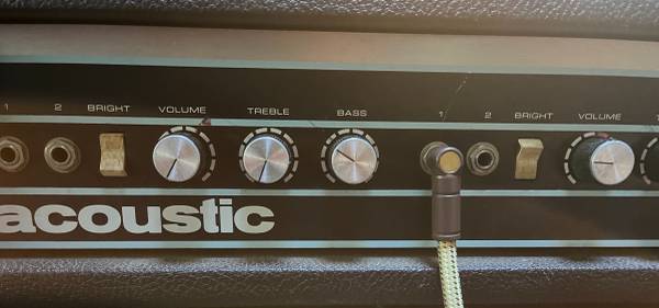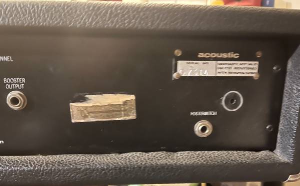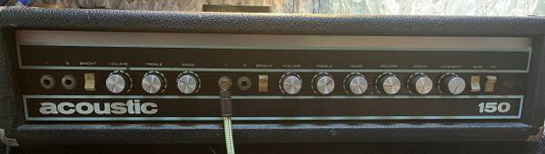Acoustic 150 head that has been completely gone through with new high quality electrolytics everywhere recently. Sounds as it should with great reverb and tremolo. Trades considered. Thank you.