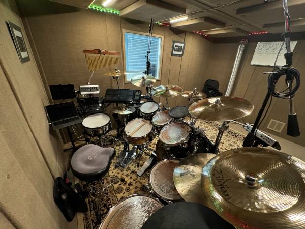 (Drums not included! They're there to give a sense of the space - my 5 piece band rehearsed in here)