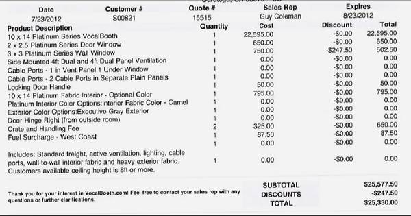 VocalBooth 10x14 Platinum Series Double-Wall Isolation Booth - 2012