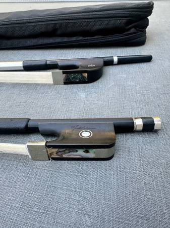 I believe they’re both 4/4. In good shape. Case and both bows for $125
