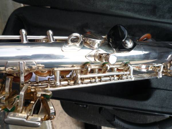 Selmer S-80II SILVER soprano sax . This is the last model to have a one piece body which is preferred by the pros
