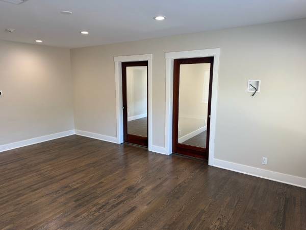 3 private offices (one has break room cabinets)